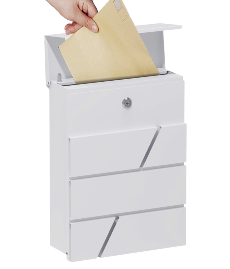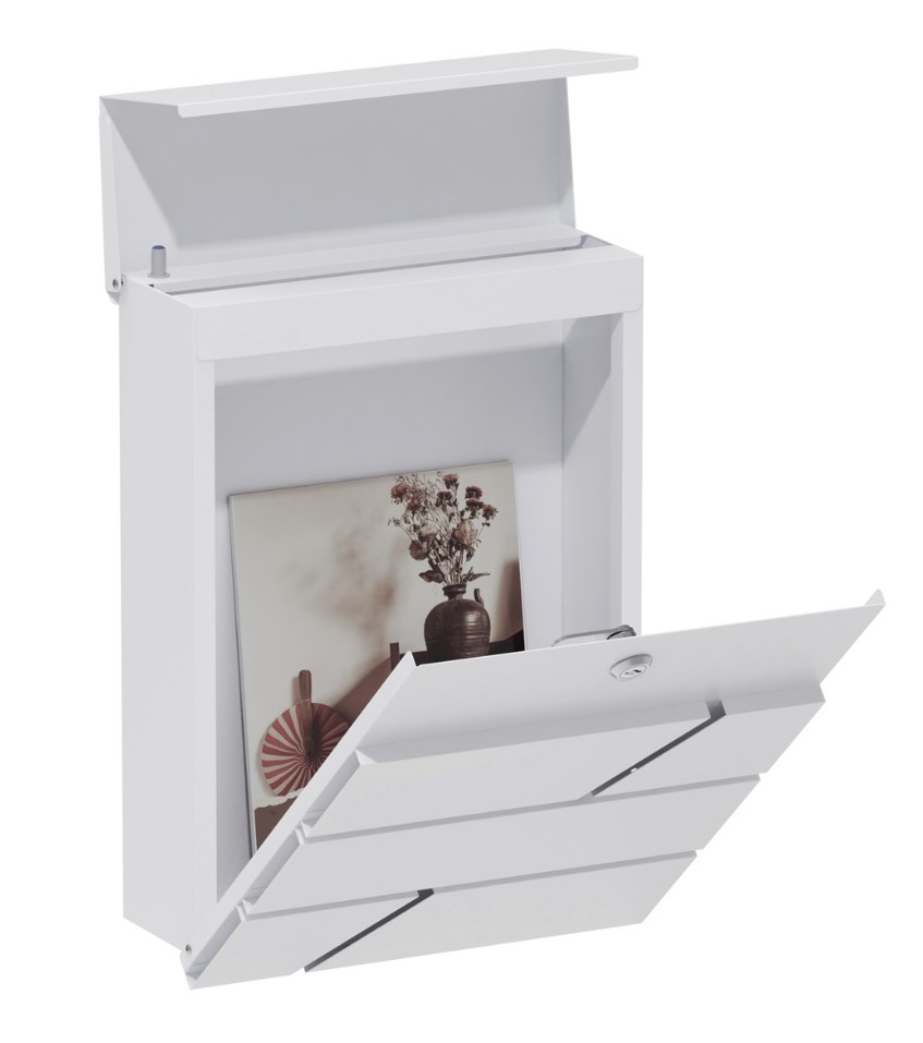Buzon de moderno diseño para exterior con capacidad para revistas.