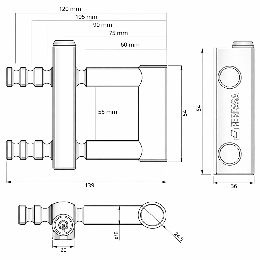 Cinco medidas de cierre 60-75-90-105-120mm Llave de seguridad tubular (3Uds por cierre)