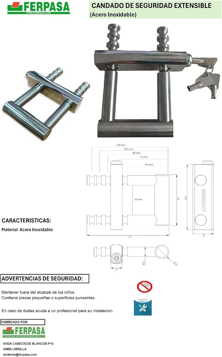 CANDADO REJA EXTENSIBLE (Opcionalmente Con llaves iguales) Desde 69,00