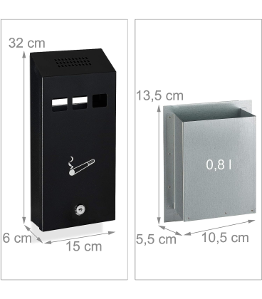 Limpieza: basta con abrir la puerta con la llave (incluida), retirar el cenicero plateado y vaciarlo