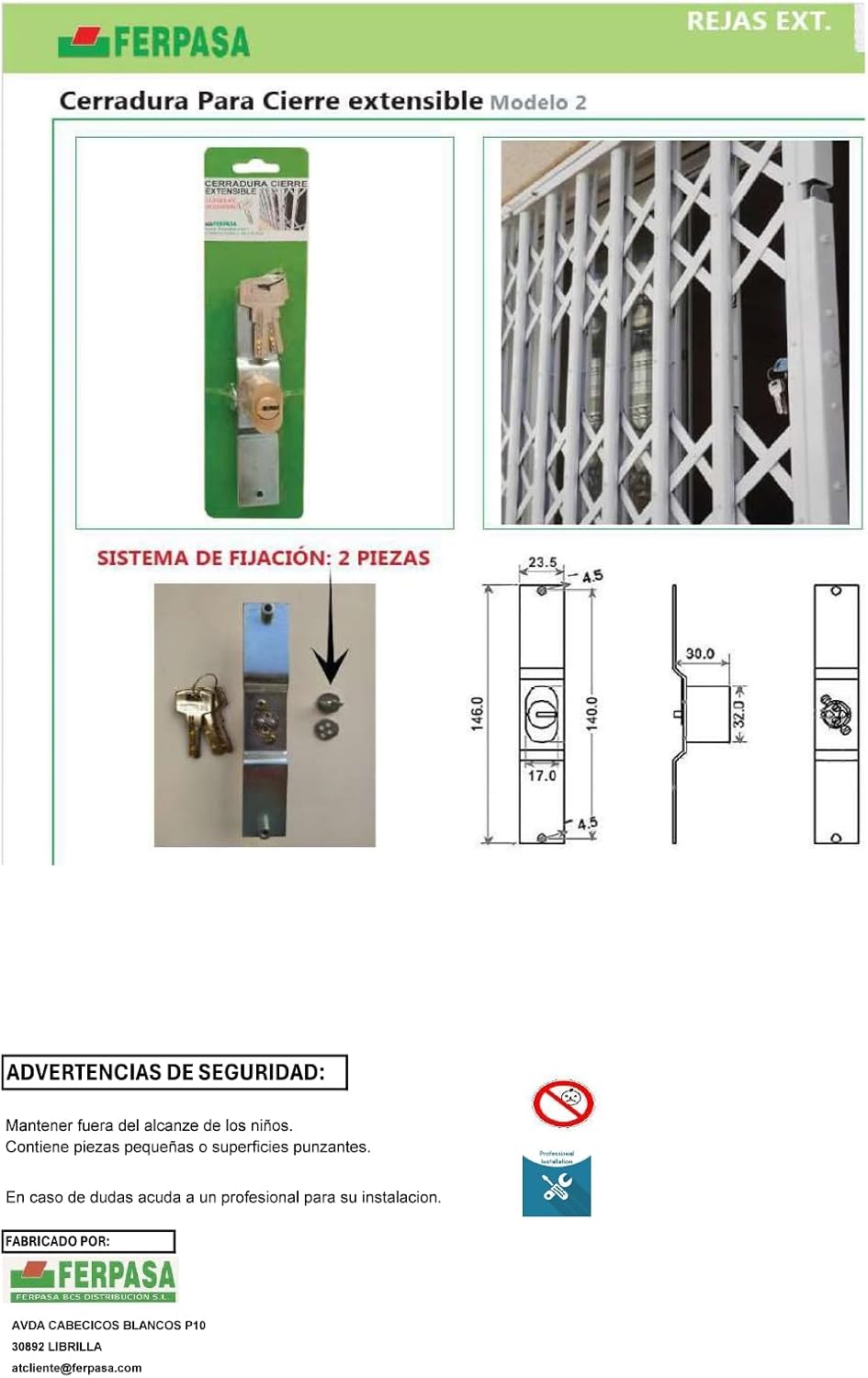 CANDADO REJA EXTENSIBLE (Opcionalmente Con llaves iguales)