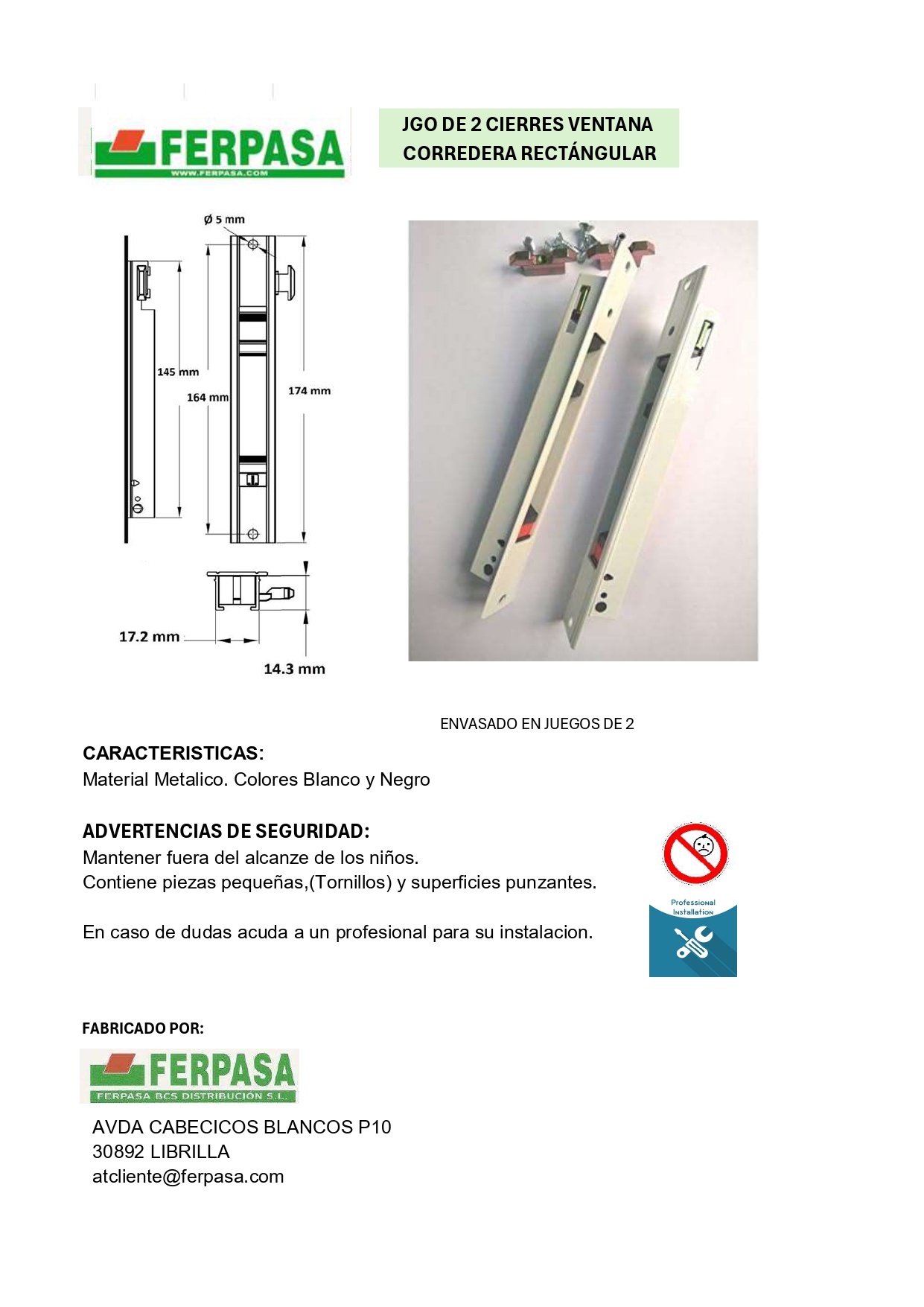 CIERRE VENTANA RECTANGULAR (INCLUYE CONTRACIERRES Y PESTILLOS)
