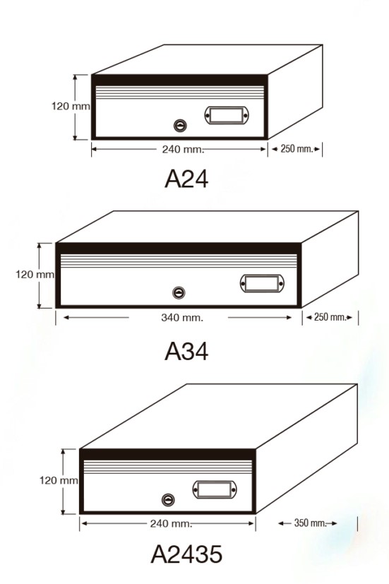 Ancho 24 Fondo 25, Ancho 24 Fondo 35, Ancho 34 Fondo 25