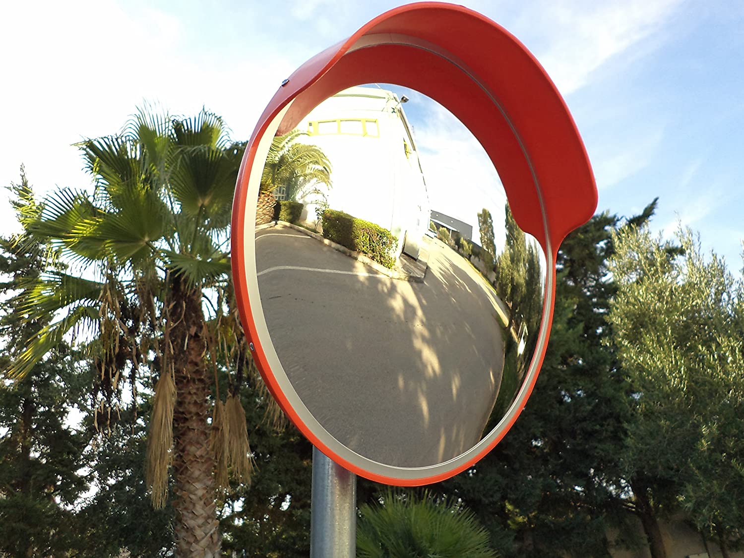El espejo convexo acrílico puede ser usado tanto en interior como en exterior, permitiendo minimizar la peligrosidad de ángulos muertos de visión para vehiculos y peatones.