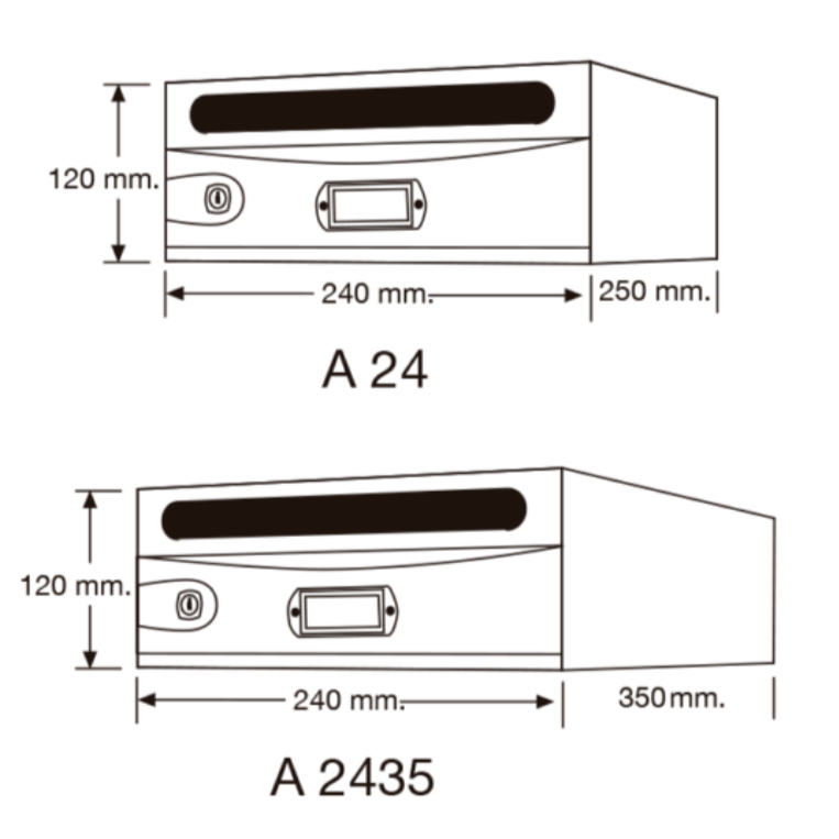Los buzones Frontis se caracterizan por la calidad y robustez que proporcionan sus materiales. Fabricados en acero termolacado o en acero inox., disponibles en dos tamaños: fondo de 25 cm (A24) y fondo de 35 cm (A2435) Su puerta y bocacartas separados le confieren una extraordinaria resistencia al vandalismo, siendo la mejor opción para comunidades conflictivas.