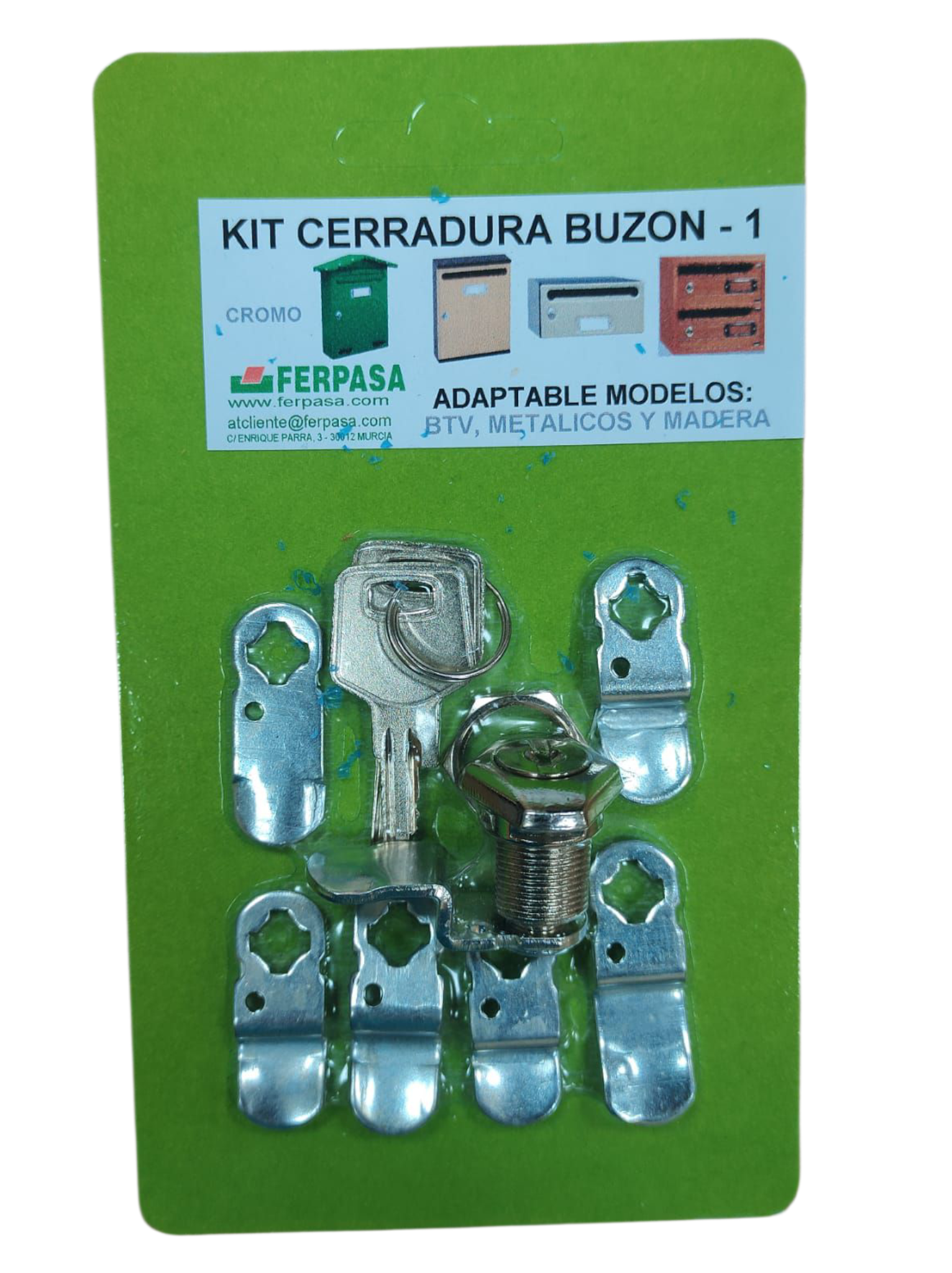 KIT CERRADURA BUZÓN ROMBO Ø16MM LONGITUD 20MM CON 7 LEVAS. ACABADO EN CROMO Y ORO