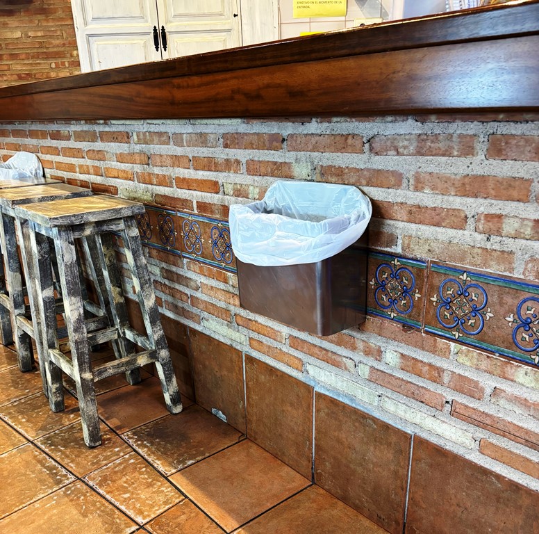 Papelera de tamaño reducido para instalar en la pared.