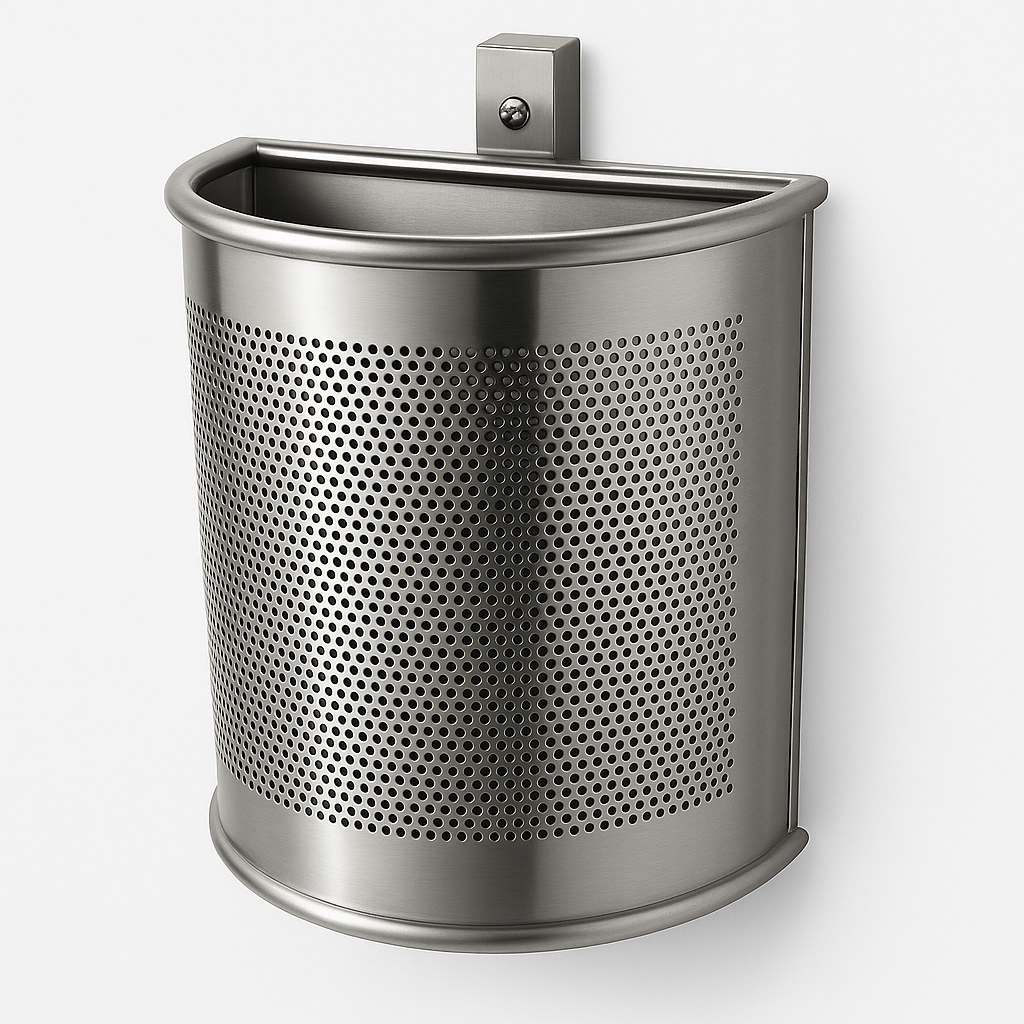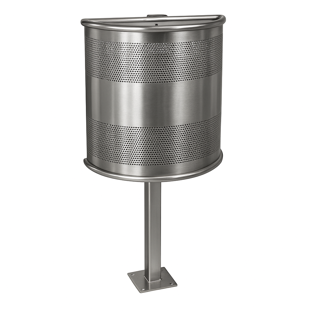 Papelera para exterior de diseño semicircular.